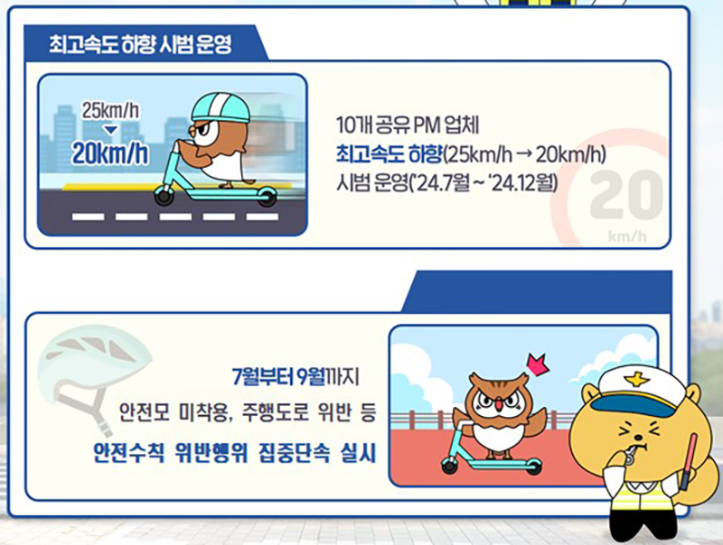 협약에 참여한 기관들은 최고속도 하향과 안전수칙 위반 집중단속, 이용자 교육 강화, 안전수칙 홍보 강화 등을 집중 추진한다.